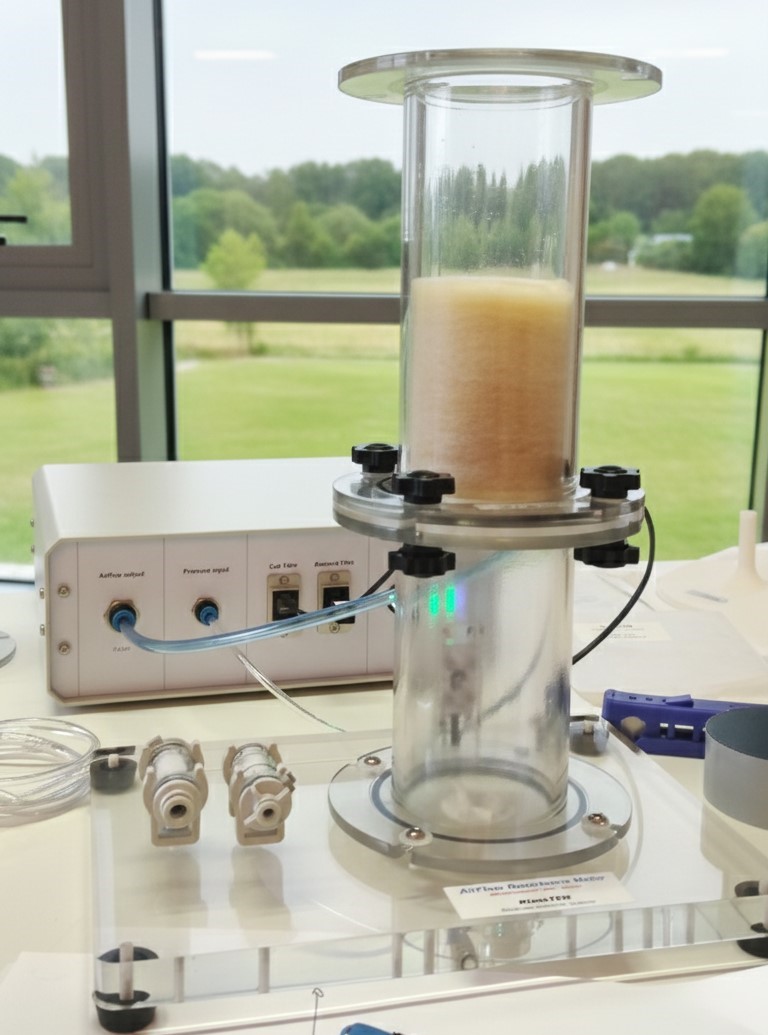 – un apparato per la misura della resistività al flusso di materiali;