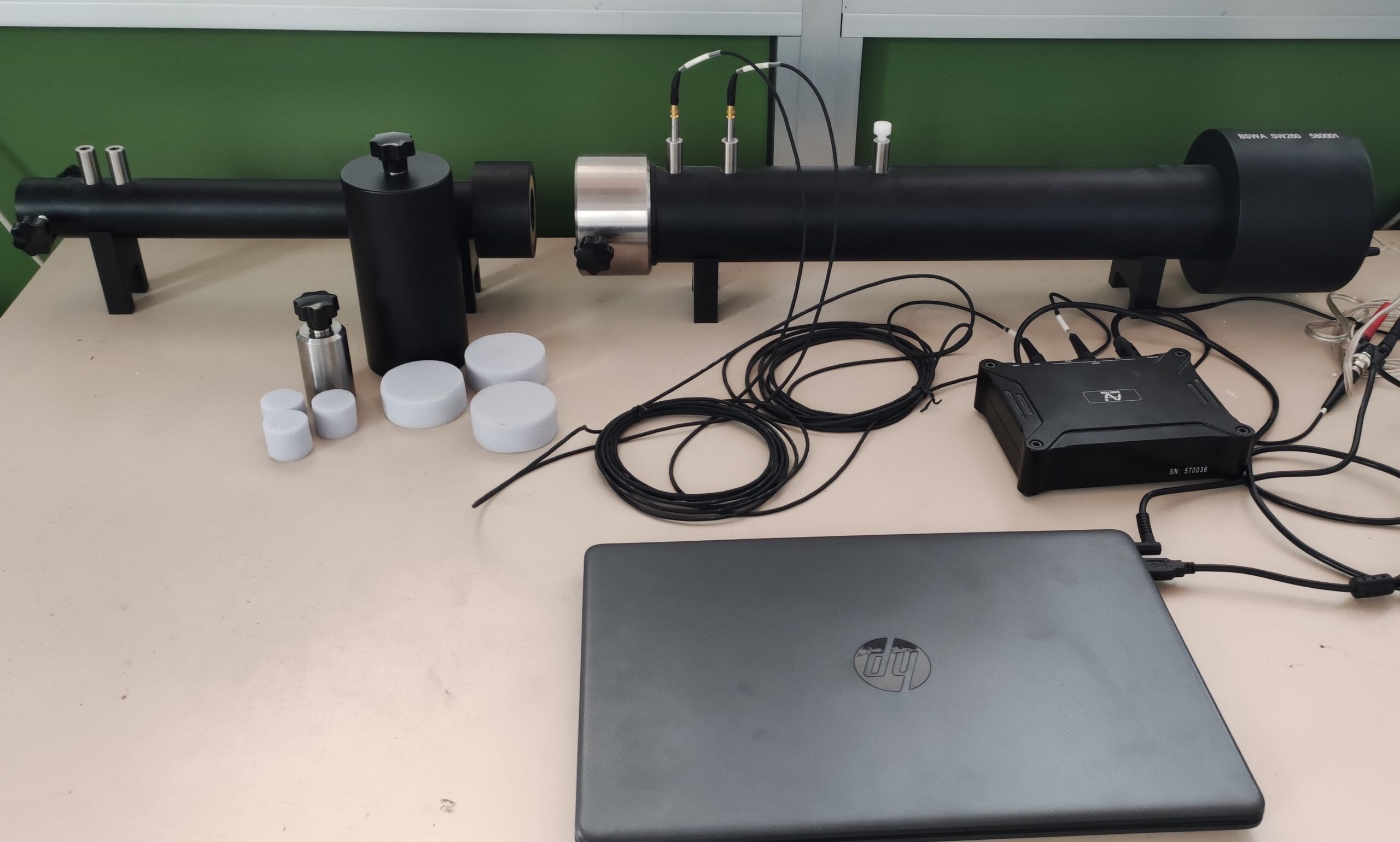 – un tubo ad impedenza per misure di assorbimento acustico di materiali per incidenza normale;
