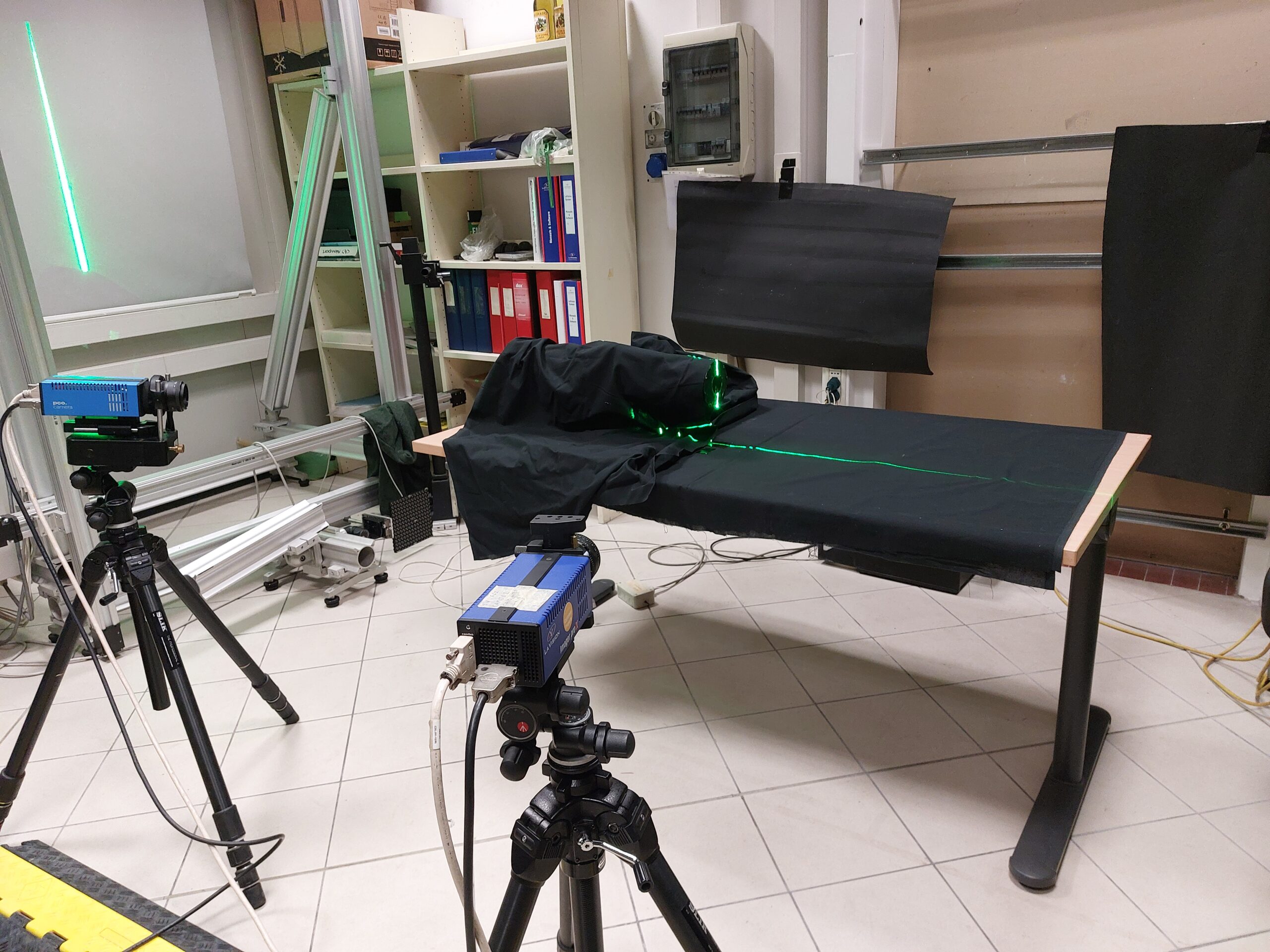 La strumentazione PIV consente di eseguire misure di velocità in fluidi otticamente trasparenti in un’ampia gamma di velocità. Il punto di forza della strumentazione, rispetto ad approcci più tradizionali come anemometri a filo caldo o a elica, è la non intrusività della misura e la possibilità di raccogliere informazioni sull’intero campo visivo delle telecamere.