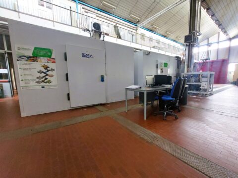Il tunnel carrabile in uso nel laboratorio costituisce un ambiente per condurre test in condizionicontrollate di temperatura e distribuzione della velocità dell’aria. Progettata per test termici su veicoli coibentati, la struttura offre uno spazio utile alla caratterizzazione di sistemi e applicazioni RACHP, potendo infatti controllare la temperatura con continuità e stabilità tra 0 e 55°C.